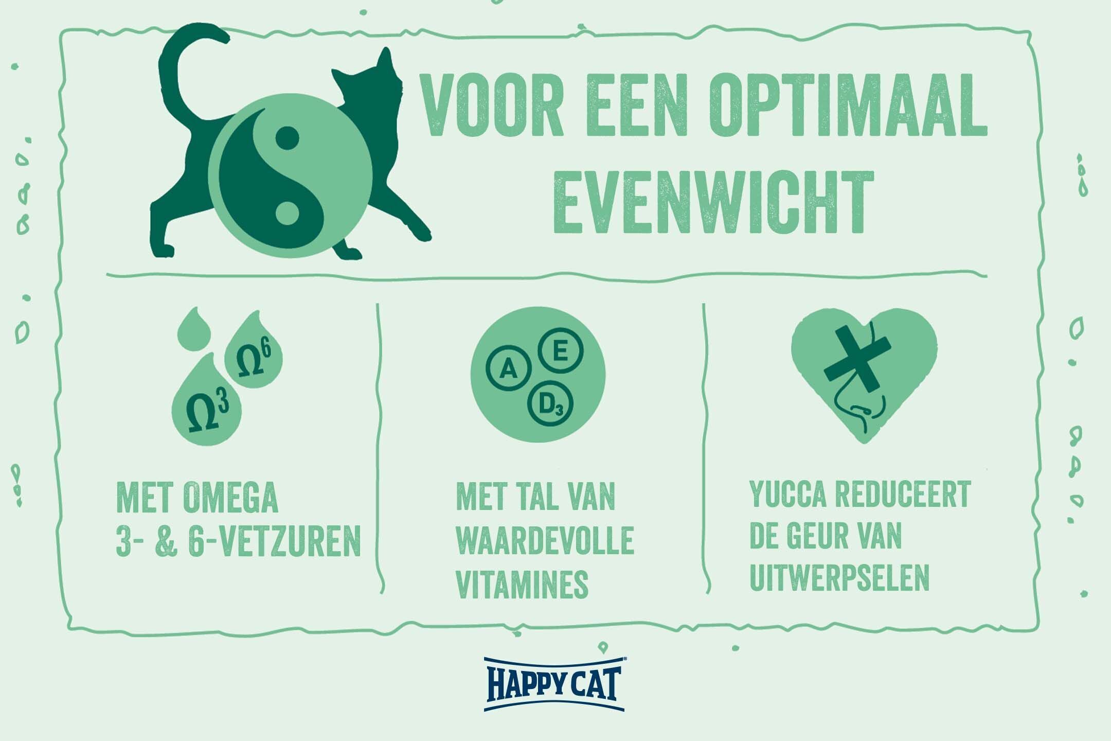 Onze Happy Cat Minkas Perfect Mix is een uiterst evenwichtige totaalvoeding voor volgroeide katten. Met lekker gevogelte, fijn lamsvlees en smaakvolle vis is het droogvoer een ware smaakbom voor uw kat. De lekkere brokkenmix wordt goed geaccepteerd en is licht verteerbaar. Onze receptuur met een groot aandeel waardevolle dierlijke proteïnen is 100 % evenwichtig en natuurlijk. Het smaakvolle droogvoer is rijk aan vele vitamines en mineralen en ondersteunt het immuunsysteem. Natuurlijk zijn onze recepturen vrij van kunstmatige geur- en conserveringsmiddelen.