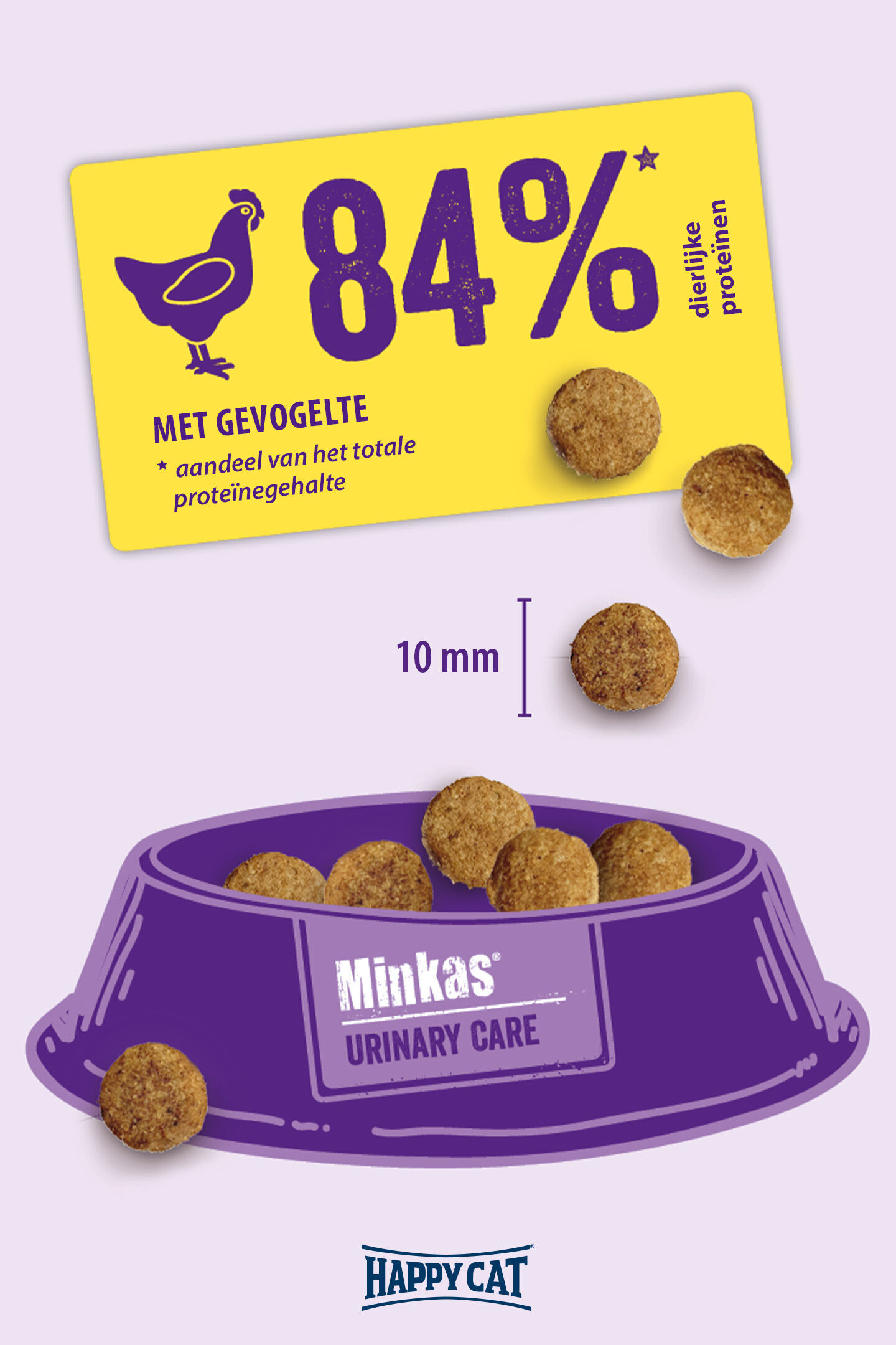 Happy Cat Minkas Urinary Care met gevogelte is een gezonde en evenwichtige totaalvoeding voor volgroeide katten. Hoogwaardige, licht verteerbare proteïnen en een verlaagd magnesium- en fosforgehalte kunnen de urine pH-waarde doen dalen en zo aandoeningen aan de urinewegen voorkomen. Geproduceerd in Duitsland onder strenge kwaliteitscontrole.
