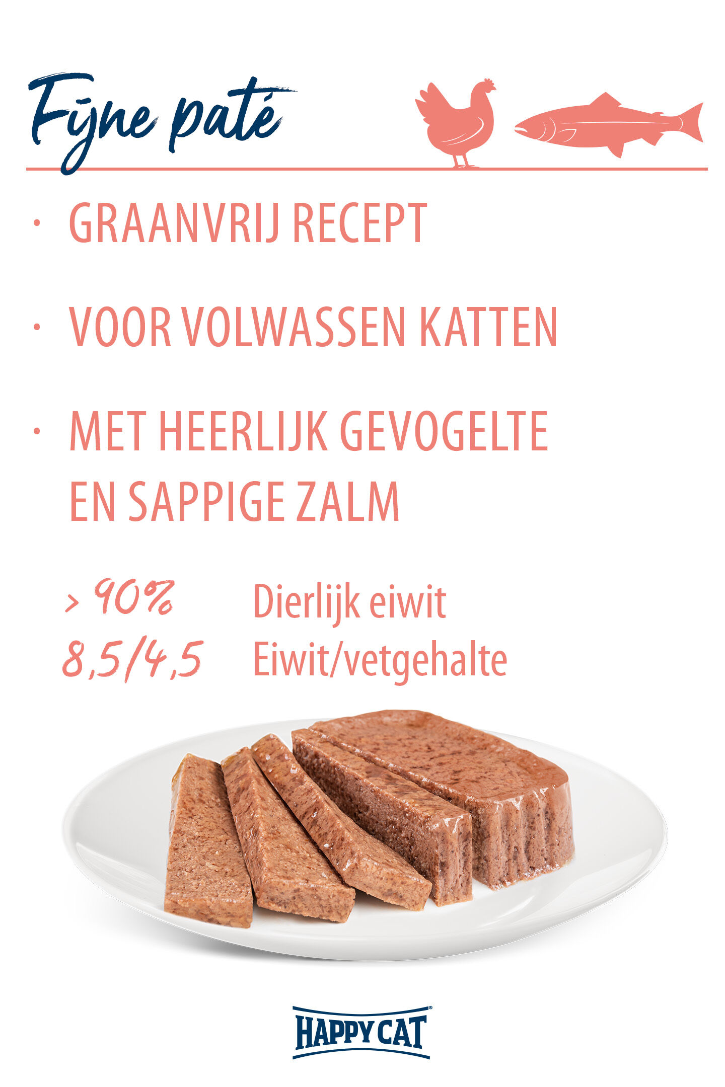 De Happy Cat Minkas Duo bakjes bevatten een heerlijke paté die kattenharten sneller doet kloppen. Terwijl je kat de paté lekker opslurpt, krijgt ze ook veel vocht binnen.