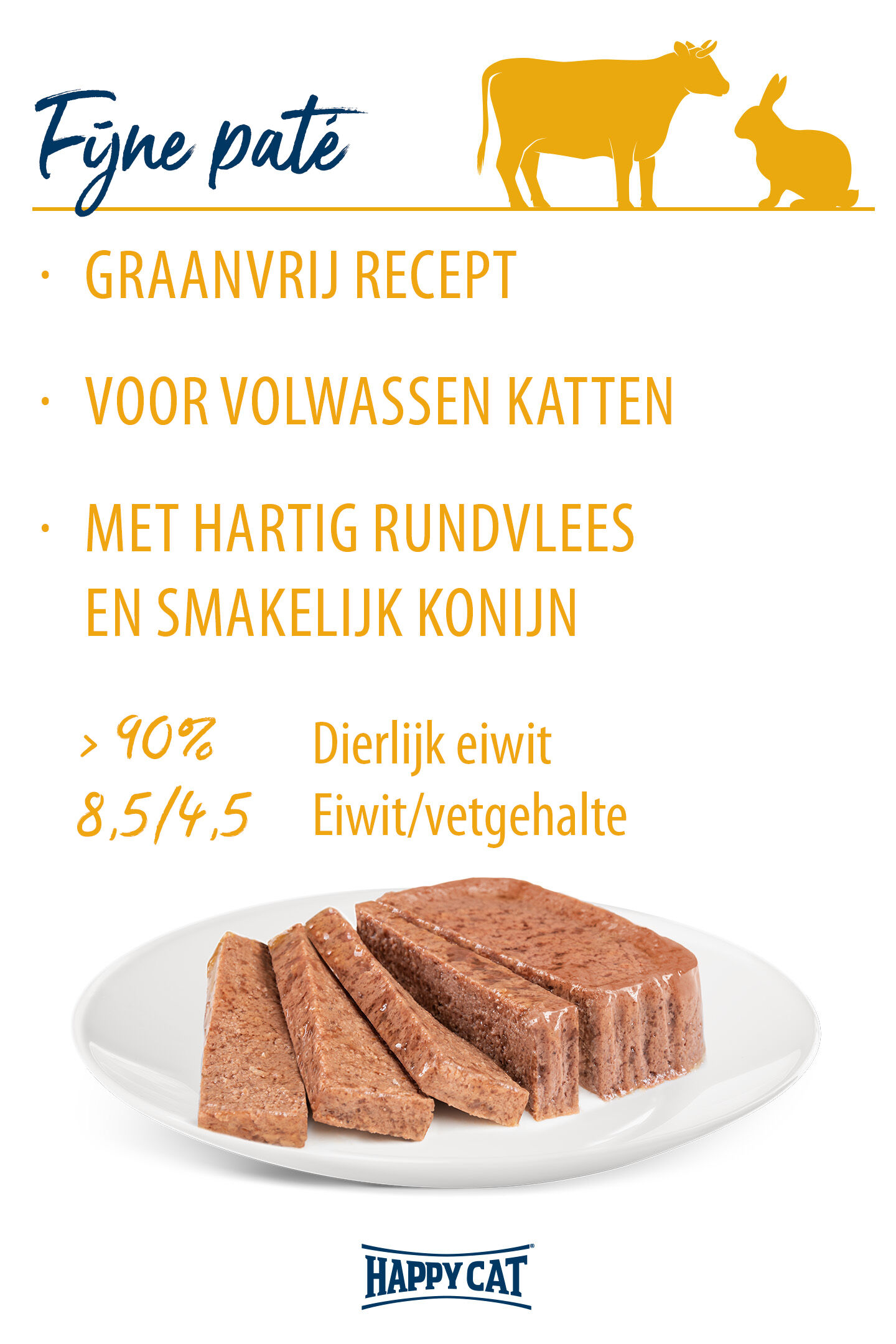 Happy Cat Minkas Duo Rund & Konijn is een exquise, graanvrije paté voor veeleisende katten. De verrukkelijke combinatie van rundvlees en konijn is een waar culinair genot om volwassen katten mee te verwennen. Het licht verteerbare recept biedt alles wat katten nodig hebben voor een gezond leven vol vitaliteit. Verwen je katachtige vriend met Happy Cat Minkas Duo Rund & Konijn - een hoogwaardige en uitgebalanceerde maaltijd die zowel smakelijk als voedzaam is.